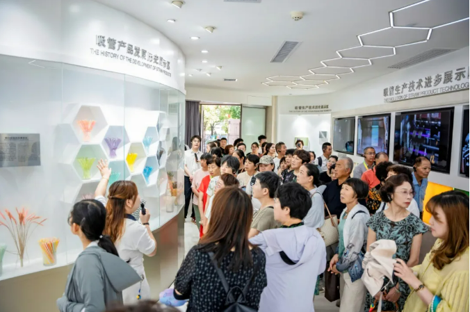在專業(yè)講解員的陪同下,游學(xué)團(tuán)參觀了中國吸管博物館。這個(gè)獨(dú)具匠心的展館不僅系統(tǒng)展示了吸管行業(yè)的發(fā)展歷程,更陳列著各式創(chuàng)意十足、色彩斑斕的吸管展品,令在場游學(xué)團(tuán)成員連連稱奇。