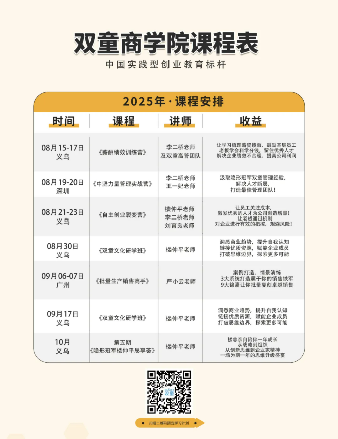 如果你也對“雙童”充滿好奇,也想賦能團(tuán)隊(duì)共同成長,歡迎走進(jìn)8月30日【雙童文化研學(xué)班】,與上百位優(yōu)秀的創(chuàng)業(yè)者一起學(xué)習(xí)!少量名額,歡迎咨詢鎖定!