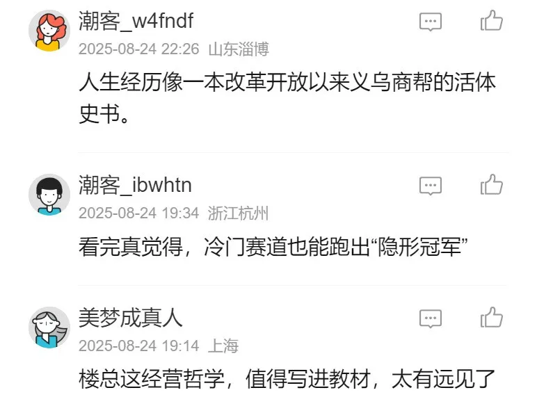 報(bào)道在《潮新聞》客戶(hù)端發(fā)布后,眾多讀者在第一時(shí)間就紛紛留言,點(diǎn)贊采訪中體現(xiàn)的充滿(mǎn)韌性、持續(xù)創(chuàng)新的浙商精神與穿越周期的商業(yè)智慧。