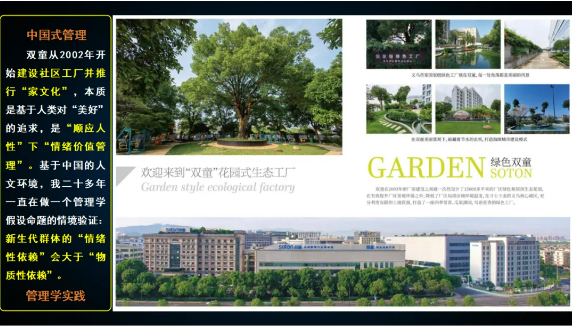 同樣,雙童花園式社區(qū)工廠的建設(shè),其本質(zhì)上也是基于人類對“美好”的追求,是“順應(yīng)人性”下的“情緒價值管理”。樓仲平希望通過打造人與自然、生產(chǎn)與生活和諧共生的空間,以增強員工的歸屬感和幸福感,從而激發(fā)員工的善意。