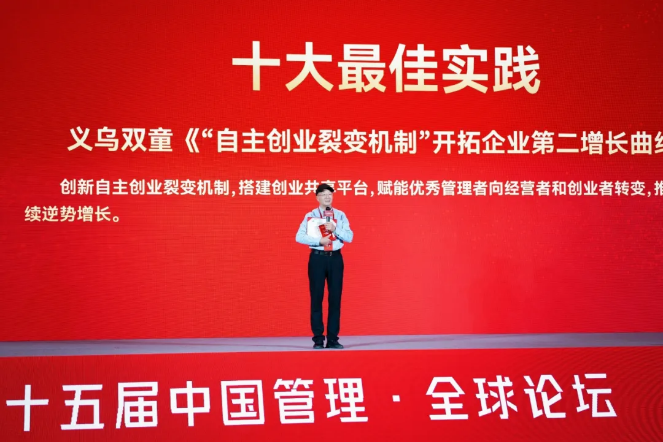 10月17日,首屆“中國企業(yè)管理最佳實踐榜”獎項正式揭曉!雙童憑借其獨特的管理模式脫穎而出,以《“自主創(chuàng)業(yè)裂變機(jī)制”開拓企業(yè)第二增長曲線》實踐案例,與海信、蒙牛、華為等10家知名企業(yè)一同榮獲“十大最佳實踐”獎項,也是榜單中唯一入選的中小企業(yè)。