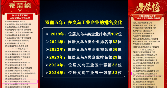 雙童五年在義烏工業(yè)企業(yè)排名變化