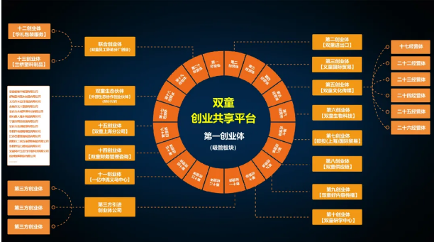 2018年,他創(chuàng)建“雙童創(chuàng)業(yè)共享平臺”,鼓勵員工內部創(chuàng)業(yè),從“打工者”變?yōu)椤昂匣锶恕?。至今已孵?6個創(chuàng)業(yè)體26個員工自主經(jīng)營體,形成了裂變式生長的創(chuàng)新生態(tài)。