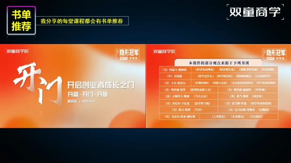 近期,雙童創(chuàng)始人樓仲平受邀出席“更新與答案:我的2025書單”總裁讀書會(huì)年終演講系列活動(dòng),與著名企業(yè)家寧高寧同臺(tái),為參會(huì)嘉賓帶來年終大課的主題分享之一《答案:閱讀推動(dòng)我創(chuàng)業(yè)成長(zhǎng)》,結(jié)合自身創(chuàng)業(yè)實(shí)踐經(jīng)歷,分享了關(guān)于管理學(xué)、經(jīng)濟(jì)學(xué)、哲學(xué)、自然科學(xué)等方面的閱讀成長(zhǎng)經(jīng)歷。