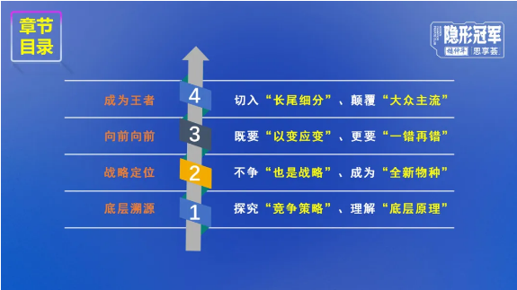 為幫助“弟子班”學(xué)員深入理解這一戰(zhàn)略,樓老師融匯創(chuàng)新理論與豐富案例,構(gòu)建出從認知到實踐的完整框架。課程分為四個循序漸進的章節(jié):底層溯源—戰(zhàn)略定位—向前向前—成為王者。