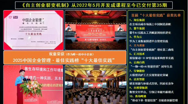 令人驚喜的是,雙童“共富工坊”創(chuàng)新模式自推出以來一直受到廣泛的社會關(guān)注,被列為浙江省共同富裕試點案例,吸引南開大學(xué)、清華大學(xué)等十余所頂尖高校前來調(diào)研總結(jié)經(jīng)驗。并在去年榮登2025中國企業(yè)管理·最佳實踐榜,成為中小企業(yè)突破增長瓶頸的范本。