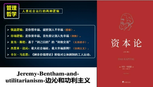 樓仲平告訴在座的塾生們,人類社會的運行邏輯可歸結(jié)為兩種:一種是“強盜邏輯”,損人以利己;另一種是“市場邏輯”,通過利他最終實現(xiàn)利己。從亞當·斯密的“無形之手”,到邊沁的“最大幸福原則”以及馬克思的《剩余價值理論》都對“利”與“他”的思考貫穿了商業(yè)文明的演進。