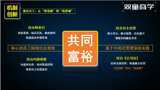 這既降低了邊際成本,也為雙童和內(nèi)部創(chuàng)業(yè)者構(gòu)建了可持續(xù)的雙贏增長模式。員工從執(zhí)行者轉(zhuǎn)變?yōu)閯?chuàng)業(yè)者,從“分配存量”轉(zhuǎn)向“創(chuàng)造增量”,極大激發(fā)了員工的潛能與收益,真正走向共同富裕。
