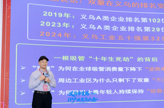 1月14日,雙童創(chuàng)始人樓仲平受邀出席義烏市首屆IP產(chǎn)業(yè)生態(tài)大會(huì),面向現(xiàn)場(chǎng)600余位企業(yè)家與創(chuàng)業(yè)者,作了題為《創(chuàng)業(yè)者IP與企業(yè)影響力》的專題分享。本次大會(huì)以“IP賦能新質(zhì)智造·生態(tài)鏈接全球市場(chǎng)”為主題,匯聚IP產(chǎn)業(yè)鏈上下游精英,共探行業(yè)新趨勢(shì)、共尋發(fā)展新機(jī)遇。