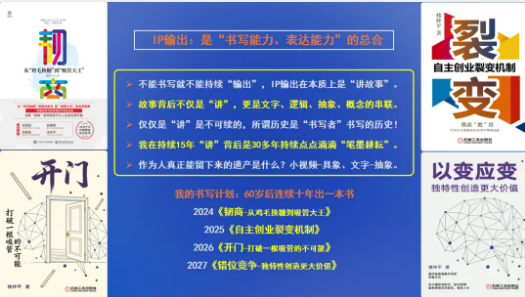 而持續(xù)書寫是IP長(zhǎng)久運(yùn)營(yíng)的根基,他累計(jì)創(chuàng)作400多萬(wàn)字,以文字沉淀思想、傳承經(jīng)驗(yàn),這正是其IP持續(xù)產(chǎn)生影響力的密碼。