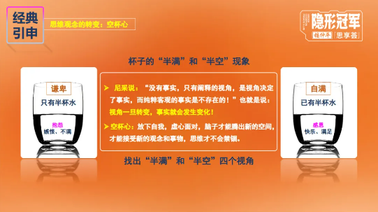 科學革命的起點,是承認人類的無知。而創(chuàng)新思維的開啟,首要前提是思維觀念的轉變,擁有“空杯心”。面對事物,人們常陷入“半滿”與“半空”的認知局限,而“空杯心”的核心的是放下自我固有認知與偏見,以虛心的態(tài)度面對新事物,唯有讓大腦騰出空間,才能接納新觀念、突破思維禁錮。