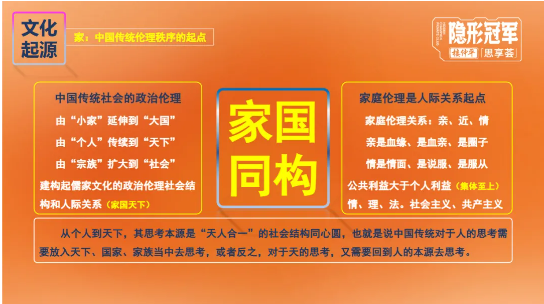 03 社會關系:儒家文化影響下形成人倫道德和人際關系。儒家“家國天下”構建血緣熟人文化,曾維系社會穩(wěn)定,卻因與現(xiàn)代契約精神沖突,成為近代轉型阻力。
