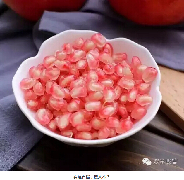 石榴可謂全身是寶:葉子可止瀉、皮曬干可補血養(yǎng)氣,還有疏肝柔肝、寧心定志的作用呢!石榴的寓意更是美好,有著紅紅火火、多子多孫的寓意!要說石榴的剝法,吸管妞做為專業(yè)吃貨,自然有妙招!快戳下圖↓