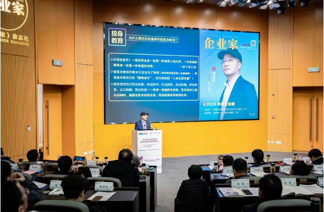 “2025企業(yè)管理年會暨國發(fā)院商學(xué)共創(chuàng)日”活動特邀樓仲平出席并在活動中受頒了“2024年度企業(yè)家”榮譽(yù)證書及獎杯;同時,他還作為企業(yè)家代表進(jìn)行了從《“吸管大王”到“企業(yè)教練”》主題分享,講述自己的創(chuàng)業(yè)歷程與不斷破界、轉(zhuǎn)換身份的故事。