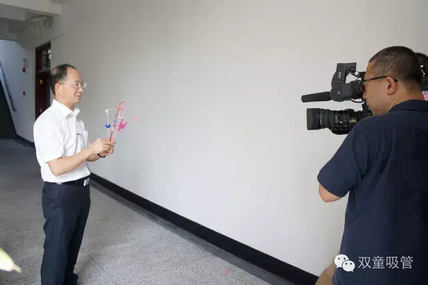 論壇還未開(kāi)始,當(dāng)家人樓總卻一點(diǎn)都不得空,為啥?因?yàn)樯虾5谝回?cái)經(jīng)頻道的新聞?dòng)浾咭渤弥@會(huì)功夫,要求他做采訪呢!當(dāng)家人樓總也坦言此次來(lái)參加中日科技論壇也是抱著學(xué)習(xí)的心態(tài)來(lái)相互交流,促進(jìn)企業(yè)提升的。看,還拿著我們的吸管又做了一回模特呢!