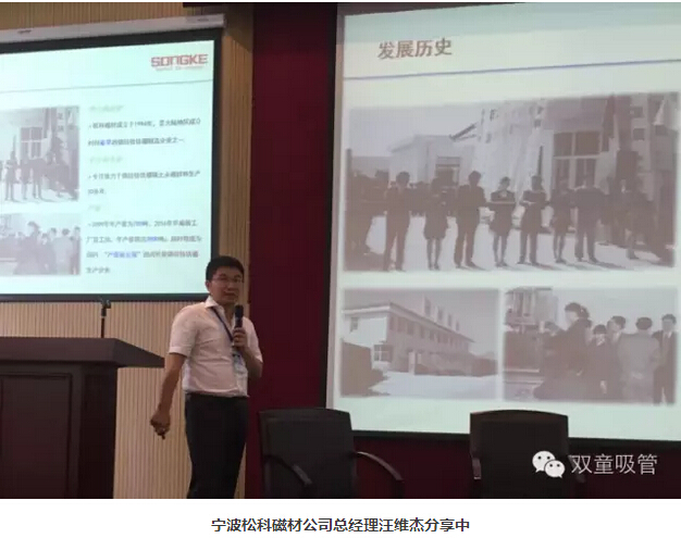 接下來(lái),專注于以磁鐵石產(chǎn)品為切口,打造電動(dòng)車、空調(diào)、電梯的生態(tài)圈,為客戶提供極致新材器的寧波松科磁材有限公司總經(jīng)理汪維杰,作了《專注于新能源領(lǐng)域用磁鐵的升級(jí)之路》的演講。專門生產(chǎn)汽車用過(guò)濾紙的典型的小巨人型企業(yè)、海水淡化用濾材市場(chǎng)占有率位居世界第一的阿波制紙上海有限公司總經(jīng)理東俊二,作了《活躍于產(chǎn)業(yè)功能領(lǐng)域的阿波制紙的今昔》的演講。