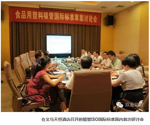 2012年7月24日,由國(guó)家塑料制品標(biāo)準(zhǔn)化技術(shù)委員會(huì)和“雙童”公司召集國(guó)內(nèi)吸管行業(yè)的十多家生產(chǎn)企業(yè),在義烏市天恒酒店召開(kāi)ISO國(guó)際標(biāo)準(zhǔn)國(guó)內(nèi)分組研討會(huì)。會(huì)上集中討論了由“雙童”提交的吸管ISO國(guó)際標(biāo)準(zhǔn)草案初稿,決定采用屬地原則的有利條件,在中國(guó)《聚丙烯飲用吸管》國(guó)家標(biāo)準(zhǔn)的基礎(chǔ)上進(jìn)行ISO國(guó)際標(biāo)準(zhǔn)的條文延伸和編輯,以最大程度上有利于中國(guó)吸管行業(yè)的健康發(fā)展。