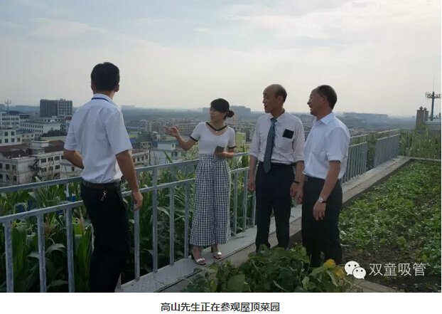 移步九樓菜園,高山先生立即被菜園子里的蔬菜吸引了,在工廠還有這么一片靜地,實在另人贊嘆!聽到“空中菜園”有近800平方米的,每個種植區(qū)的土層均有1米2深,高山先生更是贊不絕口!