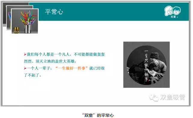 其實專注、務實、精細化等等都是企業(yè)文化,包括圍繞產(chǎn)品本身,如何把吸管做得更好都是企業(yè)文化。企業(yè)文化一定是由上而下,不能形而上,追尋到某個過程當中,理論化的東西。“雙童”的小客戶原則、50年專注吸管不變,關懷員工都是我們企業(yè)文化的具體化。