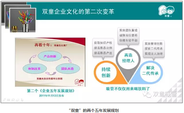 當家人樓總答:大家都會覺得企業(yè)文化很虛,但“雙童”的企業(yè)文化很實在。比如說標語、使命、價值觀,都落實到行為當中去。“雙童”通過兩個五年發(fā)展規(guī)劃來實施。第二個五年發(fā)展規(guī)劃中的持續(xù)創(chuàng)新,就是企業(yè)的使命和價值觀,再造經(jīng)理人解決了企業(yè)二代傳承的問題。