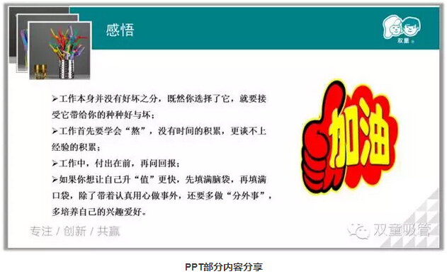 在一曲《最初的夢想》歌聲中學習會也進入了尾聲,不少童鞋都說今天真的是收獲滿滿!只有真正地提升了自己的價值,才會升職加薪!妞也上臺分享了最近開展的讀書會活動也是為了讓大家每天進步1%,給自己不斷地充電,不斷升值!親愛的“雙童”粉絲們,今天你升值了嗎?