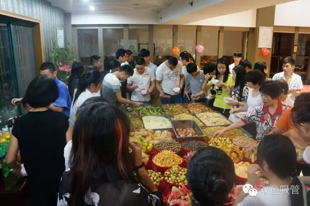 人數(shù)這么多,吃得也得升級呀!為了讓壽星們吃飽喝足,我們的后勤部門也是準(zhǔn)備了一大桌的美食。這不,瓜果點(diǎn)心、糖果糕點(diǎn)、精致小菜、葡萄酒、啤酒、各種飲料,都以自助餐的形式任君采擷!你要不吃飽喝足,你都不好意思出這個門呀!