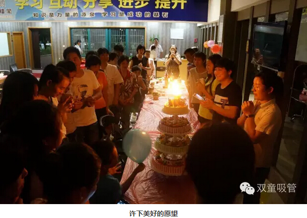 生日會到最后當(dāng)然要請壽星們吃蛋糕啦!公司特地準(zhǔn)備了五層的巨無霸蛋糕,真是讓人流口水呀!七八十號壽星圍在蛋糕邊唱歌許愿,那場面,溫馨極了!整個生日會的氣氛都是那么的愉快輕松,讓大家把所有的煩惱和不愉快都忘在九霄云外!最后,當(dāng)然要祝福我們的壽星們,生日快樂,永遠(yuǎn)幸福健康!