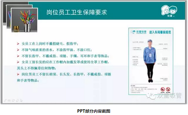 生產(chǎn)吸管對環(huán)境有著很高的要求,因此對崗位員工的衛(wèi)生要求也更加嚴(yán)謹(jǐn)。比如進(jìn)入車間的著裝要求,員工洗手消毒的流程、上下班前對崗位進(jìn)行自檢等方面都有著明確的規(guī)定。只有好的環(huán)境才能生產(chǎn)出更好的產(chǎn)品。