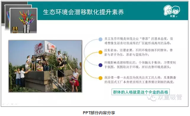 就好比剛來(lái)“雙童”的新員工,剛進(jìn)廠門(mén)的時(shí)候會(huì)隨地吐痰??墒沁^(guò)了一段時(shí)間,看到大家都不會(huì)這么做,再加上在干凈整潔的環(huán)境下也不好意思再隨地吐痰。久而久之,自身的壞習(xí)慣也慢慢地消失,養(yǎng)成了好的行為習(xí)慣!
