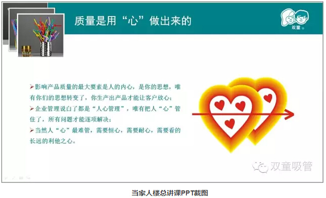 而對(duì)企業(yè)來(lái)說(shuō),影響產(chǎn)品質(zhì)量的最大要素是人的內(nèi)心和思想,唯有員工的思想轉(zhuǎn)變了,你生產(chǎn)出的產(chǎn)品才能讓客戶放心!企業(yè)管理說(shuō)白了都是“人心管理”,唯有把人“心”管住了,所有問(wèn)題才能逐項(xiàng)解決;當(dāng)然人“心”最難管,需要恒心,需要耐心,需要看的長(zhǎng)遠(yuǎn)的利他之心!