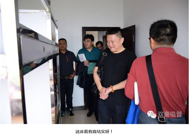 參觀員工寢室時(shí),當(dāng)家人樓總向大家介紹我們的寢室。每個(gè)房間都配有干凈整潔的洗手間、寬敞明亮的洗衣陽臺(tái),并配有各種家具,每個(gè)房間安裝有空調(diào),24小時(shí)供應(yīng)熱水洗澡和純凈飲用系統(tǒng)。就連我們的不銹鋼床,都是我們自己設(shè)計(jì),在建造之初就已經(jīng)焊死在地上,防止員工發(fā)生安全事故的同時(shí),也最大程度上保證了寢室的整潔。