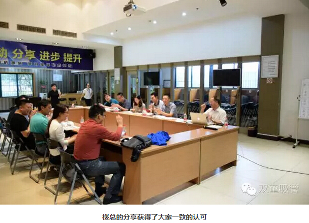參觀后,大家終于有機(jī)會(huì)坐下來分享交流。首先,當(dāng)家人樓總和大家分享了《隱形冠軍背后的“匠人”思維》課程的部分內(nèi)容,講到了“雙童”倡導(dǎo)的“匠人之心”——“初心”、“恒心”、“平常心”。只有初心存正,企業(yè)的目標(biāo)才會(huì)自然而至。一生做好一件事就很了不起了。”
