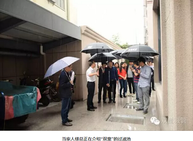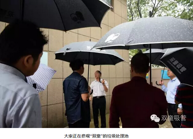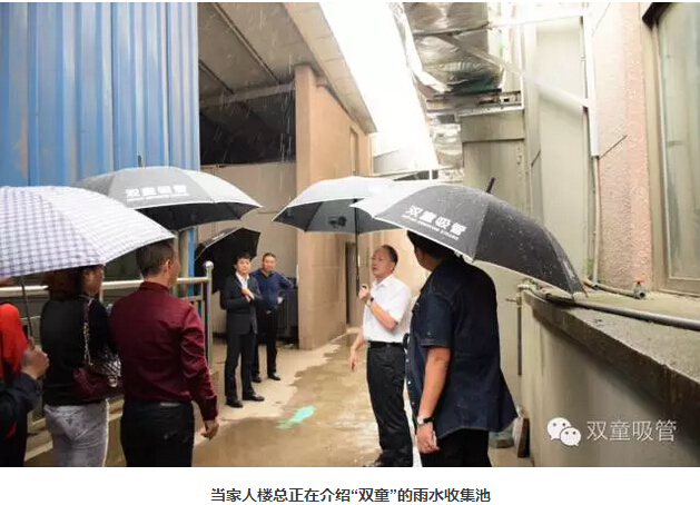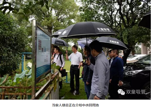 參觀的第一站,是我們的節(jié)能降耗系統(tǒng)。當家人樓總向大家詳盡地講述了我們的中水回用系統(tǒng)、雨水收集系統(tǒng)、垃圾分類系統(tǒng)等各個設施的運行原理。眾人對“雙童”這種生態(tài)循環(huán)、為社會節(jié)約資源的做法點了一個大大的贊,更對樓總多年前能有這樣的理念十分敬佩!