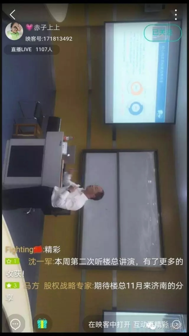 在浙江工業(yè)大學(xué)陳老師的簡(jiǎn)單開場(chǎng)介紹之后,當(dāng)家人樓總和大家分享了《隱形冠軍背后的“匠人思維”》課程。吸管妞也早早地支好了三腳架,拿著手機(jī)為大家做全程直播。瞧!直播過程中有不少人在關(guān)注,還有不少人給妞送禮物呢!