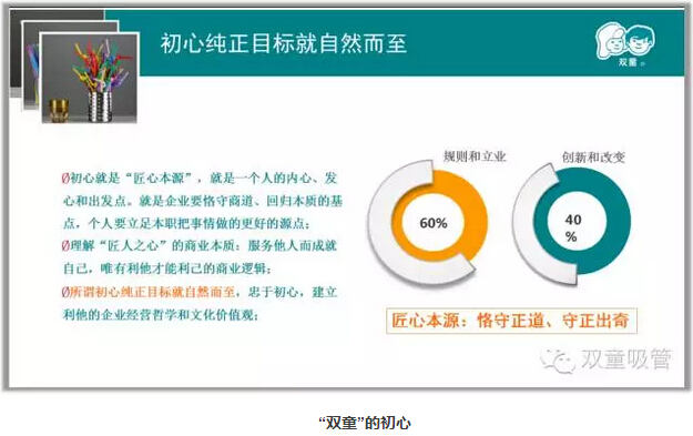 當(dāng)家人樓總說道:“商海浮沉中難得一份平常心,其實(shí)人的一輩子精力有限,把一根吸管真正做好就行了?!?“雙童”的成長(zhǎng)也是伴隨著不斷的放棄,一切以商業(yè)本質(zhì)為考核,不為虛名所拖累,以博大的胸懷把一件事情做好!