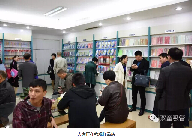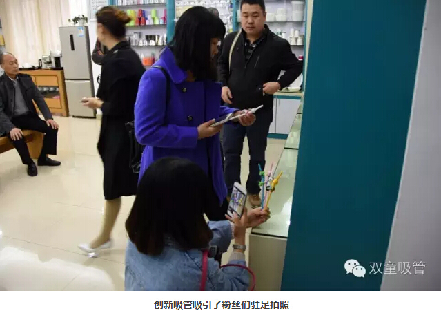 粉絲們都說平時經(jīng)常在微信、微博等平臺上看到“雙童”,今天到了現(xiàn)場可得好好逛逛呀!說走就走,妞帶大家參觀起了我們的花園式工廠!首先,大家來到了我們的樣品房,看到如此新穎的吸管,大家紛紛拿著手機相機對它們進行聚焦攝影!妞也向大家介紹了一系列創(chuàng)新吸管,讓他們驚訝的是,原來一根小小的吸管也可以有這么多的功能可以開發(fā)!