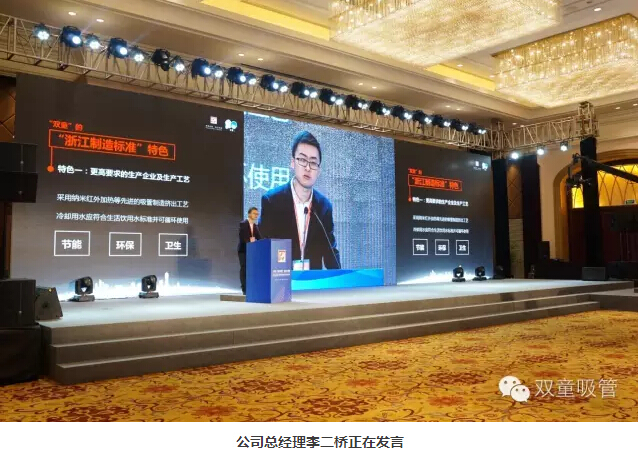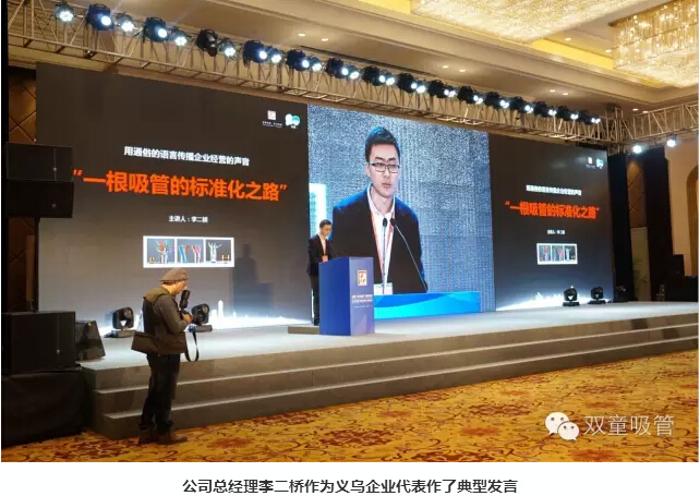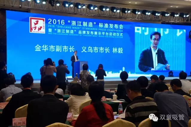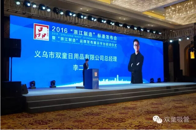 11月18日,2016“浙江制造”標(biāo)準(zhǔn)發(fā)布會(huì)暨“浙江制造”品牌發(fā)布展示平臺(tái)啟動(dòng)儀式在義烏舉行,省副秘書(shū)長(zhǎng)陸建強(qiáng)、省標(biāo)準(zhǔn)委員會(huì)、質(zhì)量監(jiān)督局的相關(guān)領(lǐng)導(dǎo)及義烏市委市政府的盛秋平書(shū)記、林毅市長(zhǎng)等主要領(lǐng)導(dǎo)都出席了本次儀式。義烏首個(gè)“浙江制造”標(biāo)準(zhǔn)研制企業(yè)雙童吸管派出了總經(jīng)理李二橋作為代表作了典型發(fā)言!