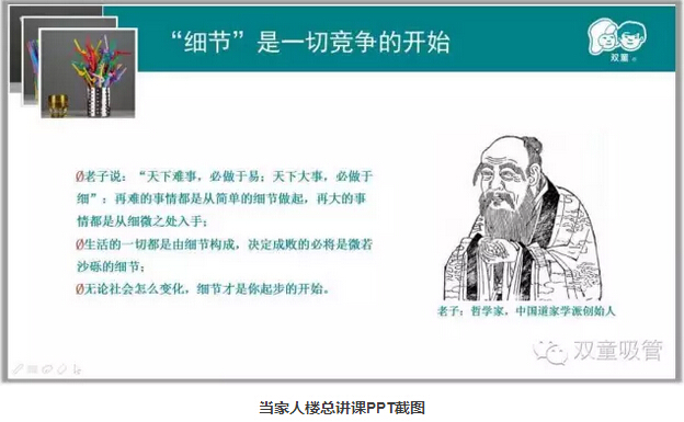 老子說:“天下難事,必做于易;天下大事,必做于細(xì)”。再難的事情都是從簡(jiǎn)單的細(xì)節(jié)做起,再大的事情都是從細(xì)微之處入手;無(wú)論社會(huì)怎么變化,我們都應(yīng)該腳踏實(shí)地,做好細(xì)節(jié)工作!