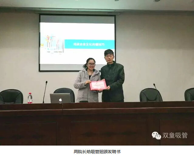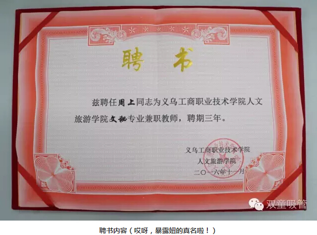 分享會的一開場,就給了妞一個大大的驚喜!在主持人簡單的開場介紹之后,周院長還給吸管妞頒發(fā)了文秘專業(yè)兼職教師聘書呢!沒想到妞也當(dāng)上老師啦!妞在受寵若驚的同時也暗下決心,一定會更加認(rèn)真對待自身工作,積累更多的經(jīng)驗,日后能幫助到我們的文秘同學(xué)們!