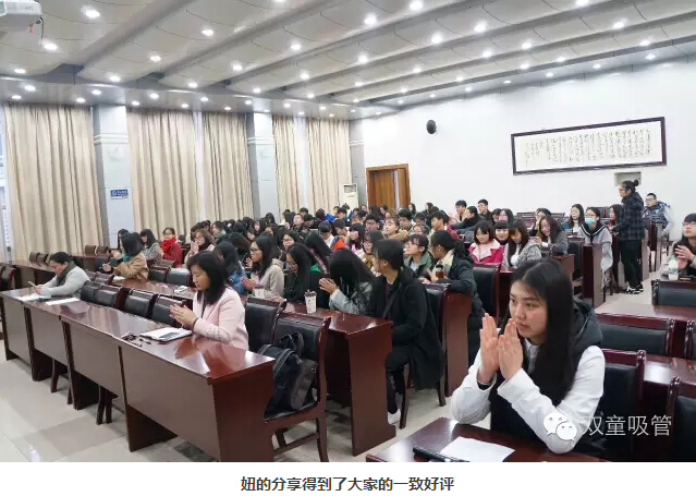 11月25日下午,吸管妞受邀前往義烏工商學(xué)院,與200多位文秘專業(yè)的師生們分享了《淺談企業(yè)文化傳播技巧》課程。為什么會請吸管妞去分享呢?在這之前,人文旅游分院的周院長和尹老師特地帶著三個班的100多位學(xué)生來“雙童”參觀,學(xué)習(xí)“雙童”的企業(yè)文化與傳播工作!周院長認(rèn)為“雙童”的做法非常值得同學(xué)們借鑒,才邀請了吸管妞前去和同學(xué)們分享呢!