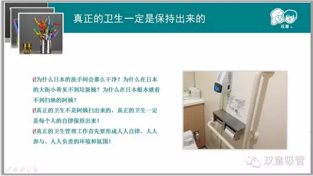衛(wèi)生不是阿姨打掃出來的,而是大家保持出來的,“雙童”十多年以來持續(xù)投入給員工配置高品質(zhì)的硬件環(huán)境,其目的不僅僅在于“善心”和“愛心”,而在于讓大家形成良好的習(xí)慣和質(zhì)量意識(shí),從而生產(chǎn)出更好的產(chǎn)品,最終提升自己而提升企業(yè)!