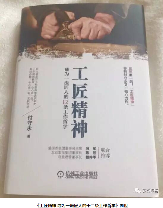 在國內(nèi),付守永先生是著名的“工匠精神第一人”,他不僅寫就了《工匠精神》、《路演大師》等暢銷著作,且多年來一直致力于傳播工匠精神,為企業(yè)界帶來了實(shí)實(shí)在在的經(jīng)營指導(dǎo)和管理方略。近日,付守永先生的新書《工匠精神 成為一流匠人的十二條工作哲學(xué)》已經(jīng)面世!而在此書的開頭,就是付守永先生邀請(qǐng)當(dāng)家人樓總為此書寫的序文!看來付守永先生對(duì)“雙童”的”工匠精神“也相當(dāng)認(rèn)可。想看看當(dāng)家人樓總是如何詮釋”雙童“匠心的嗎?下面妞帶大家來看看!
