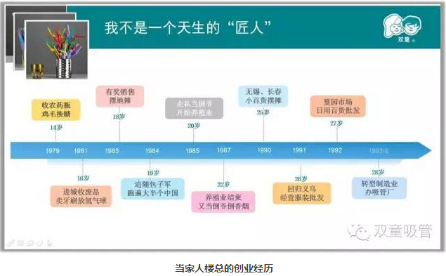 1994年4月,偶然的機(jī)會(huì)讓我再次選擇“一根小吸管”作為重新創(chuàng)業(yè)的起步,無數(shù)次的創(chuàng)業(yè)失敗使我在經(jīng)營“雙童”之后選擇了更多的堅(jiān)守和專注,從而逐漸拋棄了一夜暴富的急功近利,減少了唯利是圖的投機(jī)心理,深刻認(rèn)知到創(chuàng)辦企業(yè)的意義所在,始終關(guān)注事物本身,全身心投入把事情做到更好。