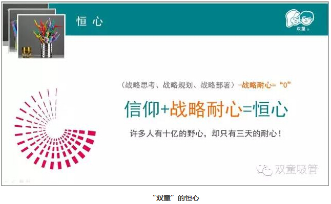 從一根簡單的不能再簡單的吸管,到今天“雙童”琳瑯滿目的創(chuàng)意吸管,“雙童”的吸管已不再是簡單喝飲料了,幾厘錢的吸管逐漸地變成了幾毛錢、幾塊錢,甚至于我們的吸管都可以賣到十塊錢、八塊錢一支了。而取得這樣的創(chuàng)新突破,絕非是一朝一夕的短、平、快,而是以“十年為一個(gè)單位”的持續(xù)積累而一點(diǎn)點(diǎn)的突破。