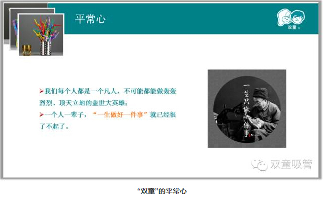 這家一次性筷子工廠和日本企業(yè)的綠色環(huán)保經(jīng)營模式一直影響了我對(duì)企業(yè)和產(chǎn)品的經(jīng)營思維,認(rèn)知到通過堅(jiān)持和創(chuàng)新完全可以改變企業(yè)的不變真理,從而影響了“雙童”在后續(xù)發(fā)展過程中始終堅(jiān)守在“一根吸管”上,并通過專注不輟、精進(jìn)創(chuàng)新、用心經(jīng)營而形成了獨(dú)具特色的“雙童工匠思維”,使“雙童”逐漸擺脫了薄利多銷的粗放經(jīng)營,逐步形成了精細(xì)化管理、生態(tài)環(huán)保、與員工共成長的可持續(xù)發(fā)展道路,從而徹底改變了世人對(duì)吸管行業(yè)的低、小、散、弱的傳統(tǒng)認(rèn)知。下面我就“雙童”二十多年逐漸形成的“匠人思維”做一個(gè)簡單的總結(jié)和回顧: