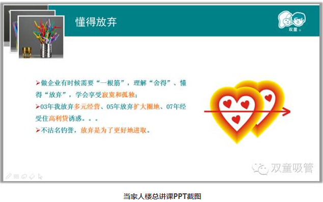回想起“雙童”這二十多年,其實(shí)我認(rèn)為當(dāng)老板最難的就是要擁有一顆“平常的心”,許多老板的痛苦不是因?yàn)楂@得太少,而是因?yàn)橄胍奶啵?/span>