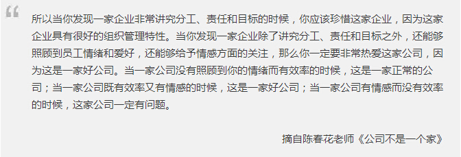 “組織不會(huì)照顧個(gè)人,也就意味著在組織中我們是用目標(biāo)、責(zé)任、權(quán)力來(lái)聯(lián)結(jié),而不是用情感來(lái)聯(lián)結(jié)的。”