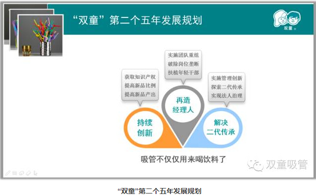 “雙童”公司是我1994年建立的,已經(jīng)22載。2011年,在頒布了公司下一個(gè)《企業(yè)五年發(fā)展規(guī)劃》的同時(shí)我提出“持續(xù)創(chuàng)新,再造經(jīng)理人,解決二代傳承”。