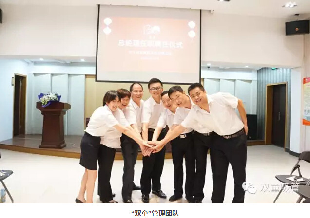 2011年之前我很累,很多東西是我一個(gè)人在推動(dòng)。2011年新的團(tuán)隊(duì)重組后,很多事情就從原來(lái)的自上而下變?yōu)樽韵露系耐苿?dòng)。2015年,30歲的李二橋成為總經(jīng)理:當(dāng)時(shí)我就明確,李二橋,不僅是CEO,將來(lái)干得好也可能是公司的接班人。他是農(nóng)村小伙,2001年初中畢業(yè)后到“雙童”做操作工。他是我在十五年的時(shí)間里一步步 “帶”出來(lái)的。選擇李二橋做總經(jīng)理,我是經(jīng)過(guò)長(zhǎng)時(shí)間考量,尤其這4年,他跟我一個(gè)辦公室,我?guī)缀跆焯煸谟^察、了解這個(gè)小伙子。他勤奮、踏實(shí)、懂技術(shù),在公司任勞任怨,從未計(jì)較個(gè)人的眼前利益,這一點(diǎn)非常難能可貴,我覺(jué)得將來(lái)把企業(yè)交給這樣的人,放心。