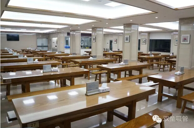 今年十月份,“雙童”的五星級員工餐廳全面改造完成。餐廳內(nèi)的設(shè)施都配備了最好的硬件,就拿桌子來說,員工餐廳的每一張桌子重達(dá)四五百斤,是木中之王的柚木定制而成,每一張就要15000元。